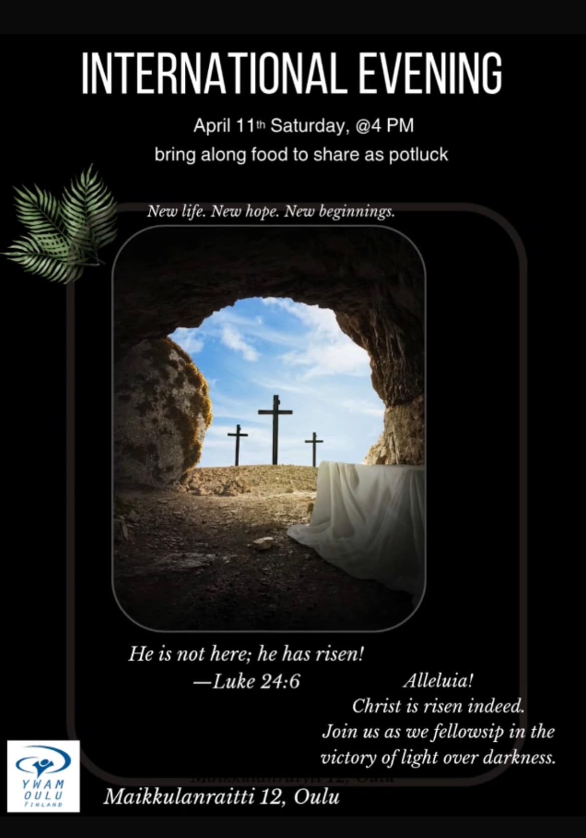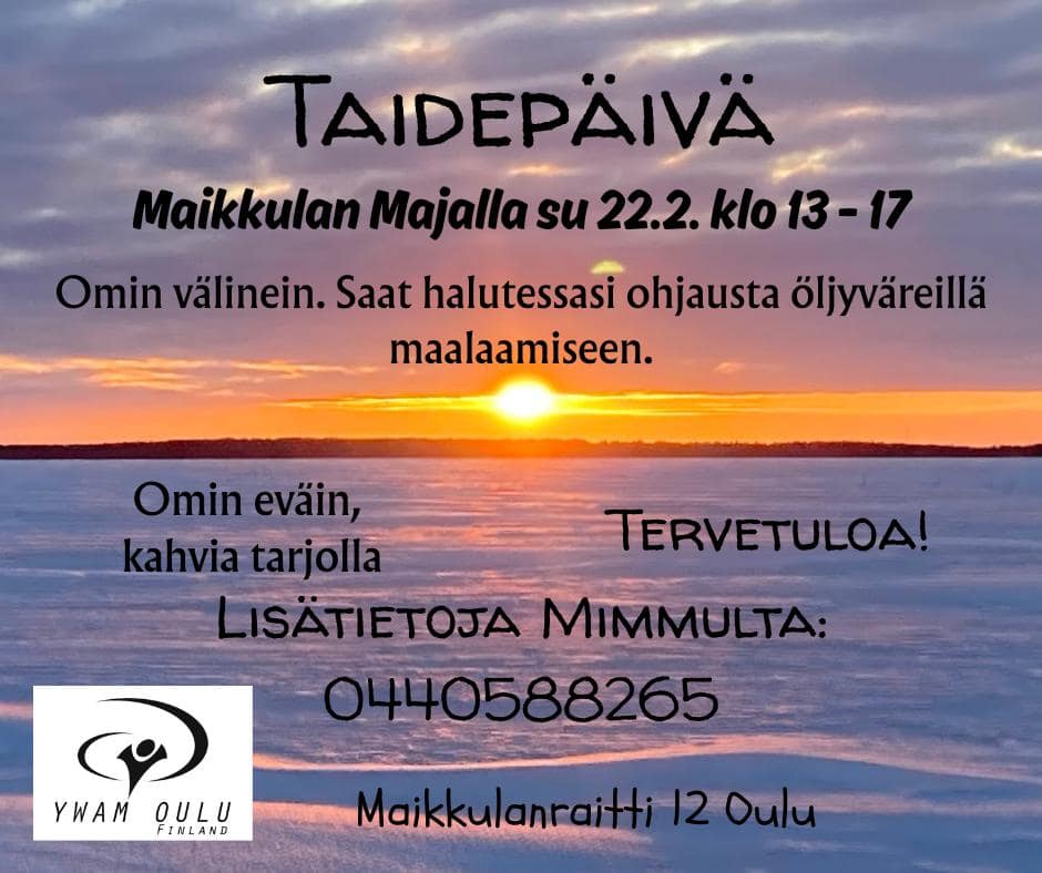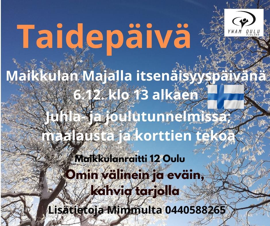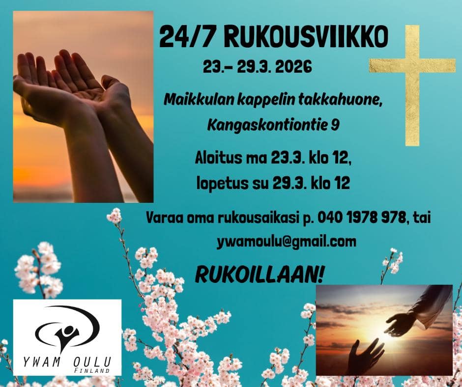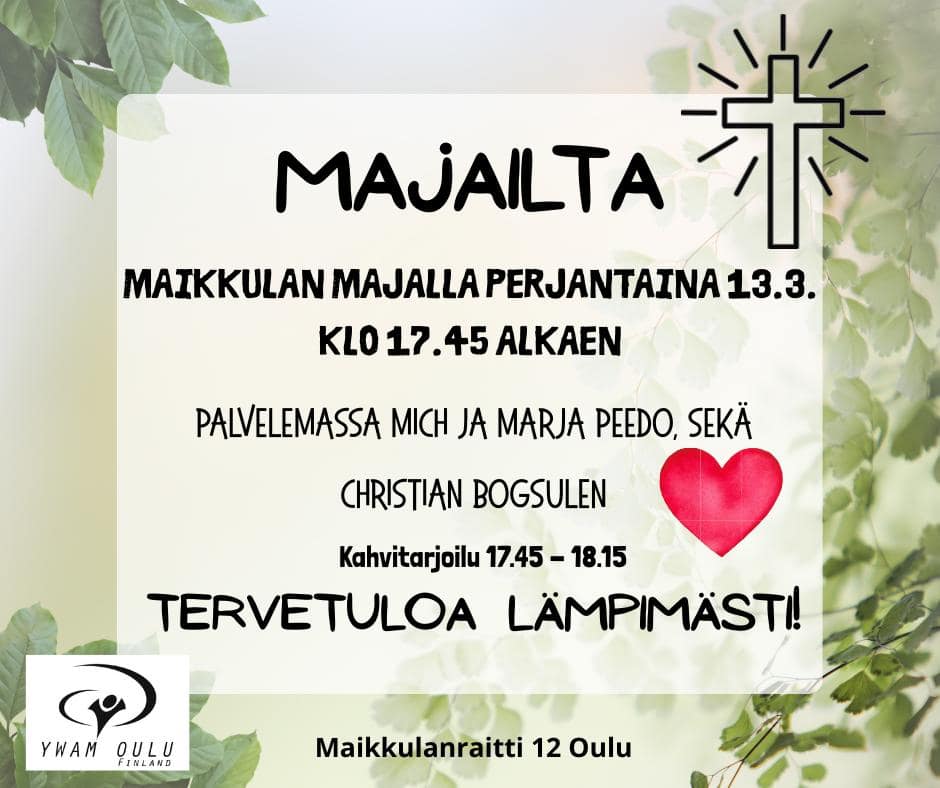Welcome warmly to YWAM Oulu Open nights on Fridays at 6PM at Maikkulan Maja (Kangaskontiontie 9A).