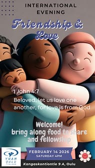 https://www.youtube.com/watch?v=-aFqqHbbM5g&t=86s helmikuu 2026 ma ti ke to pe la su 1 2345678 9101112131415 16171819202122 232425262728 https://www.youtube.com/watch?v=-aFqqHbbM5g&t=90s Date 14 helmi 2026 Time 16:00 - 20:00 International evening – Friendship & Love Welcome! Bring along food to share and fellowship. Share this event + Add to Google Calendar + iCal / Outlook export 00 days 00 hours 00 minutes 00 seconds
